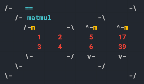 We thought this sort of reminded us of Lisp, and, in fact, [Hagiwara] makes that clear later in the post. The real problem is how do you…write? draw?… this kind of code? At first, he laid it out in a spreadsheet before compilation. Now he’s built an editor for it, and you can try it in your browser. There’s also a limited-feature compiler that can handle simple programs.