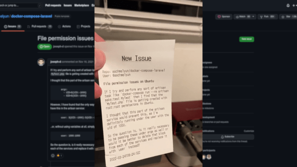 According to [Andrew Schmelyun], seeing a fast-food order pop up on a thermal printer was the inspiration for this build. Maintaining over one hundred GitHub repos as he does, it’s easy for the details of any one bug report or feature request to get lost in the swarm of sticky notes that [Andrew] previously used to keep track of his work. To make it happen, he teamed an Epson thermal printer up to a Raspberry Pi Zero W and worked out the details of sending data to the printer using PHP. Luckily, there’s a library for that — the beauty of GitHub.