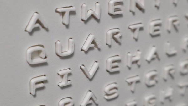 [Maarten Pennings] shares a word clock project – but not the regular kind. For a start, this clock is a shining demonstration of hobbyist-available 3D printing technologies, with embedded light guides for the letters printed in transparent filament, thanks to a dual-extruder printer. For a word clock, it’s surprisingly small – in fact, it uses an 8×8 addressable LED matrix, with words shown in different colors. If you’re looking to build a novel word clock, you’re all set here – [Maarten] tells all about this project’s story and provides a treasure trove of insights into designing all of its aspects!