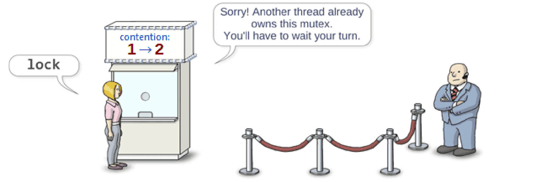 解决办法是设定 PTHREAD_MUTEX_RECURSIVE 属性。然而对于给出的问题而言,专门使用一个 mutex 来保护一次简单的增量操作显然过于昂贵,因此 c++11 中的 原子变量 提供了一个可使此函数既线程安全又可重入(而且还更简洁)的替代方案: