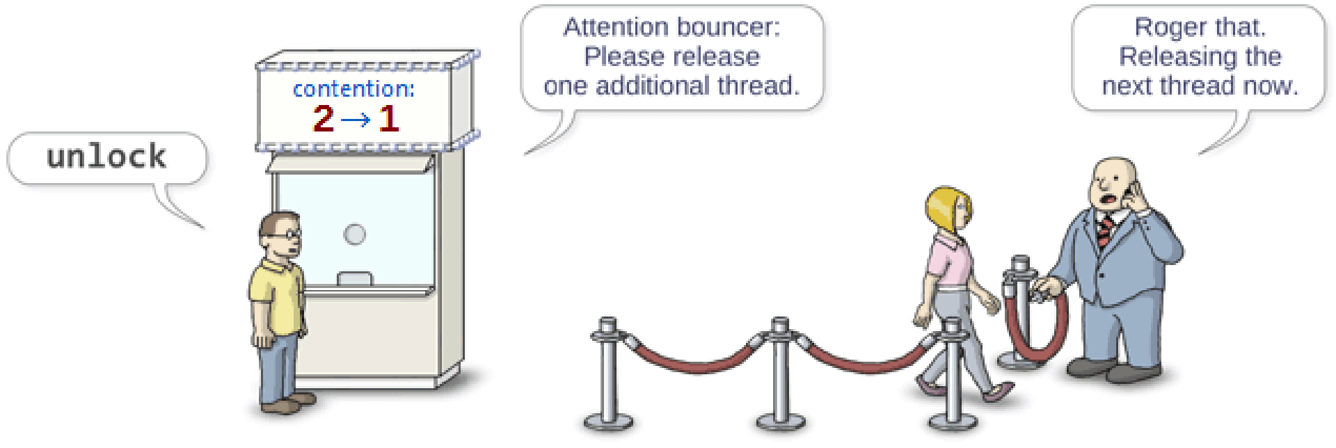 在说另外一个线程同步的方法之前,回答一下文章开头留下的一个疑问:可重入只是线程安全的充分不必要条件,并不是充要条件。这个反例在下面会讲到。