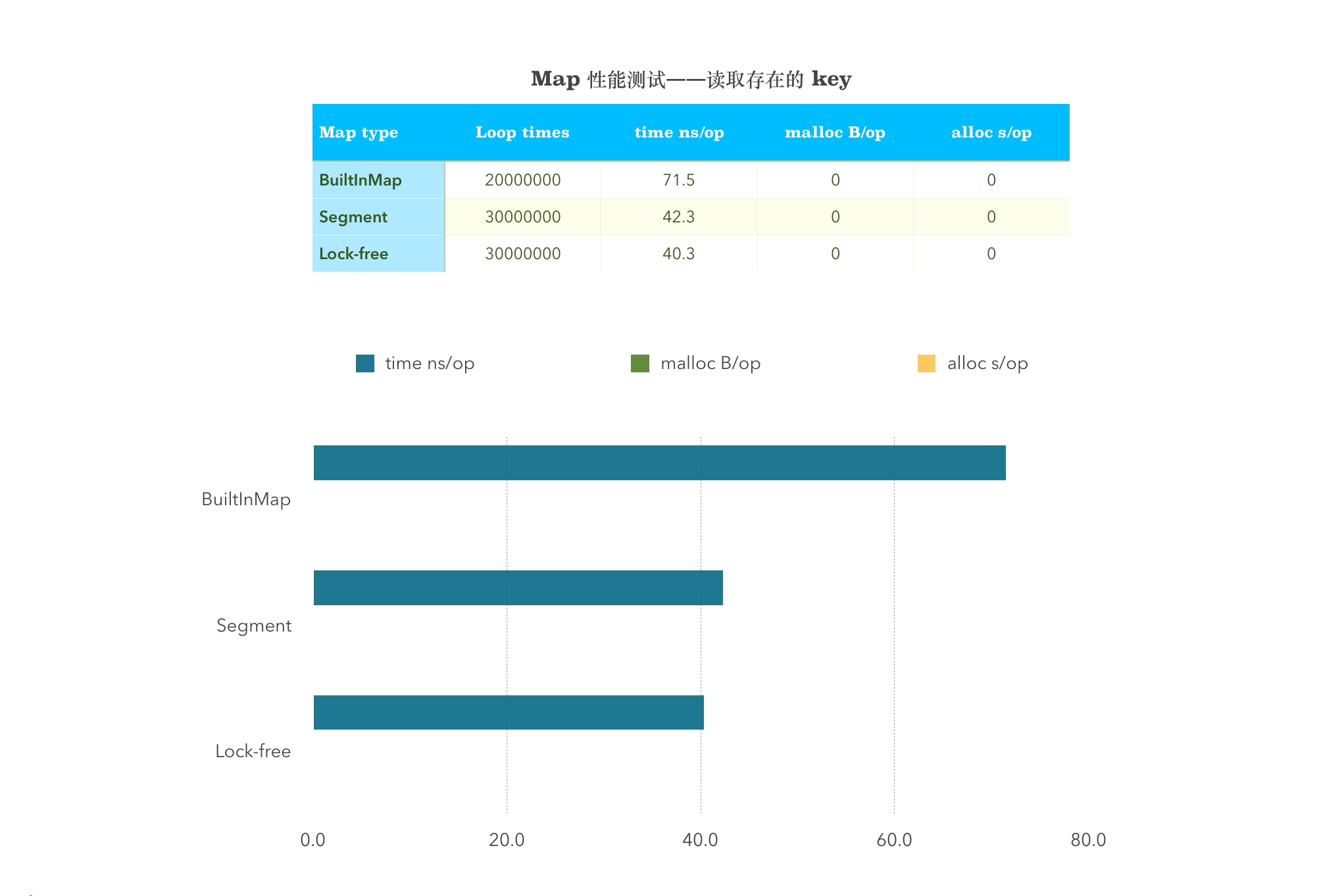 BenchmarkSingleGetPresentBuiltInMap-4 20000000 71.5 ns/op 0 B/op 0 allocs/op