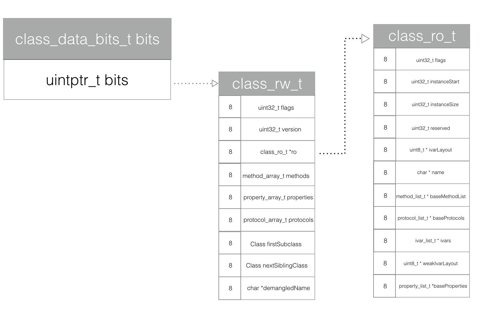class_data_bits_t bits; // class_rw_t * plus custom rr/alloc flags