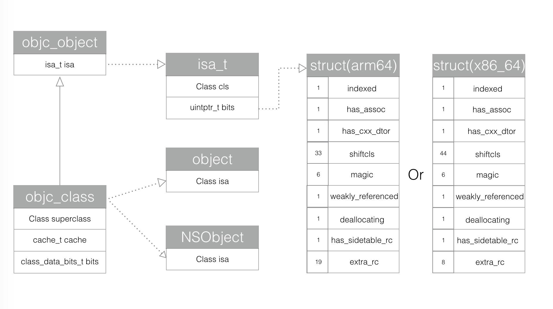 从上述源码中,我们可以看到,Objective-C 对象都是 C 语言结构体实现的,在objc2.0中,所有的对象都会包含一个isa_t类型的结构体。