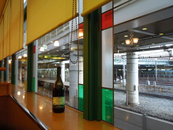 窓際のテーブルは日暮里駅の線路が目の前・・・