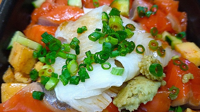 縁側が乗ってる感じのみと思いきや、サーモンの下に