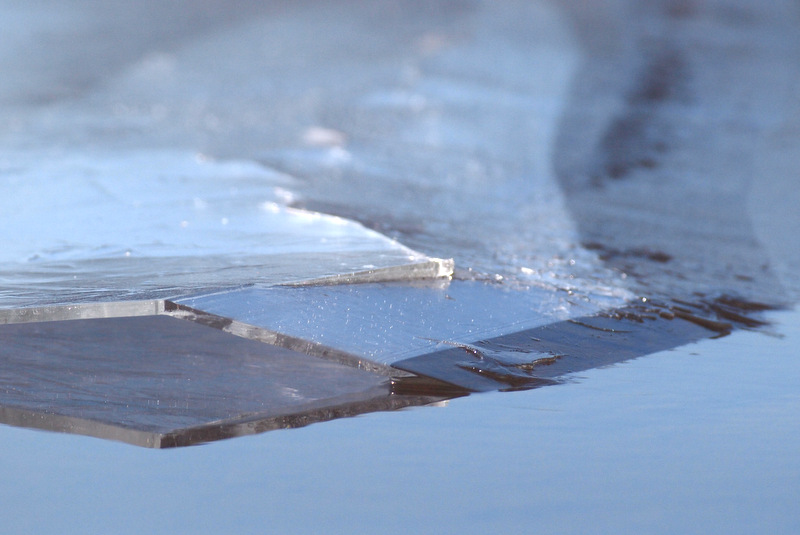 厚く張った氷に亀裂が入り 割れ ぶつかり合い