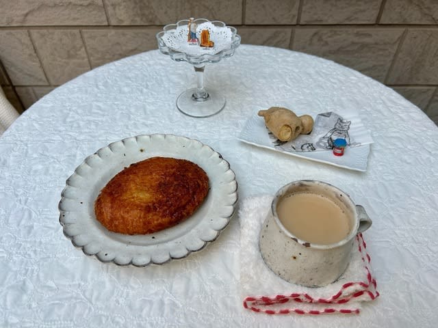 ジンジャーを入れて、手鍋で煮込んだ、アッサムのミルクティーを一緒に〜