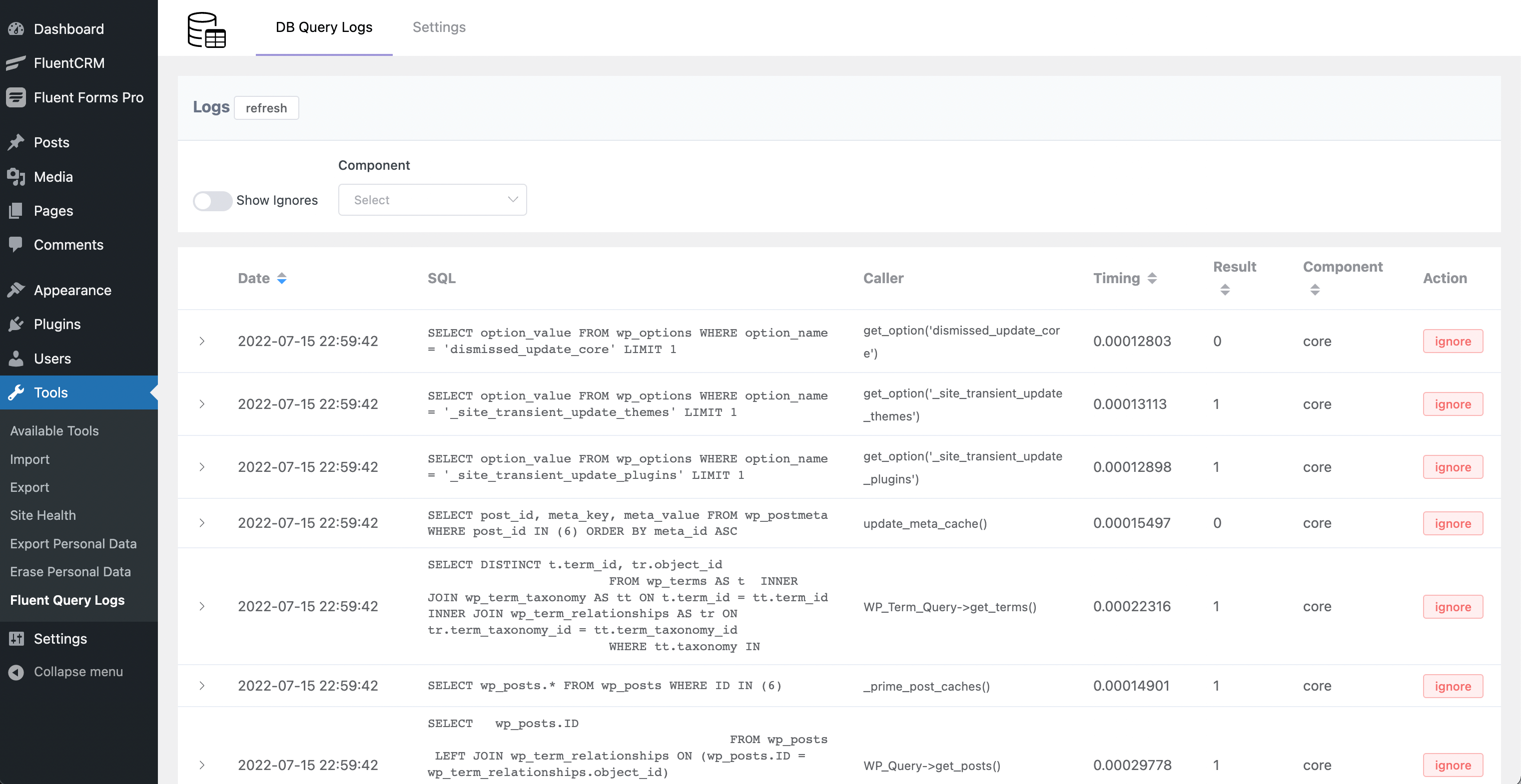 /wp-content/plugins/fluent-query-loggerdirectory, or install the plugin through the WordPress plugins screen directly. - Activate the plugin through the \’Plugins\’ screen in WordPress