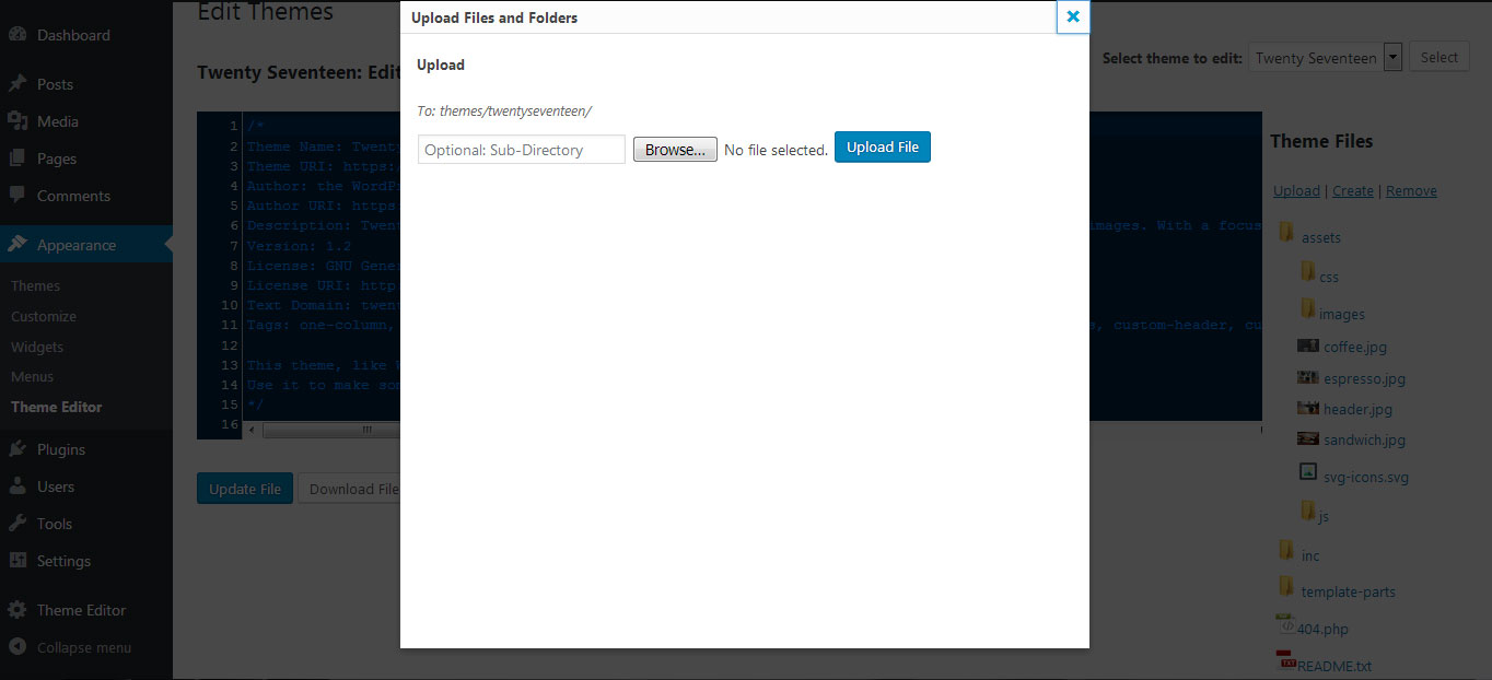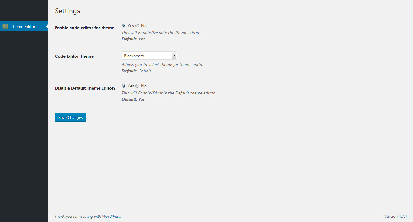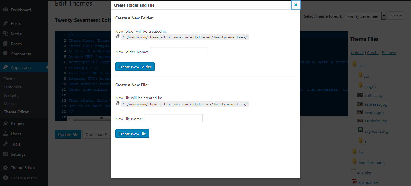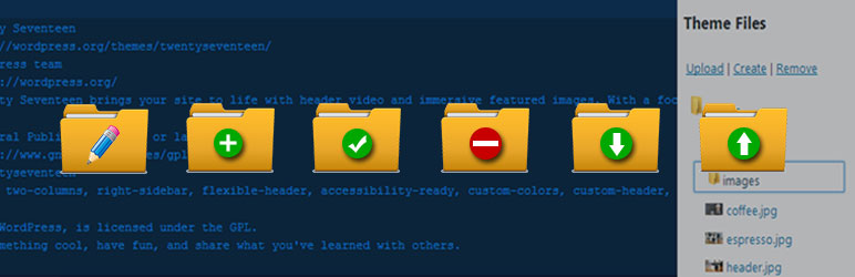 Theme Editor allows you to edit theme files, create folder, upload files and remove any file and folder in themes and plugins. You can easily customize you themes and plugins directly.