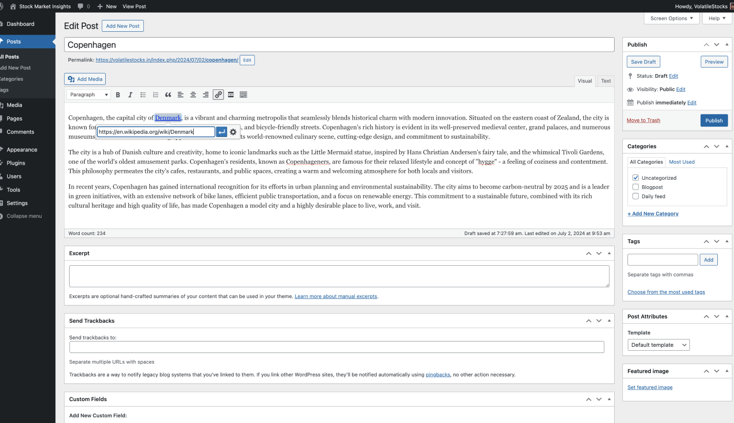 When writing articles, decide which words show a Wikipedia popup on a particular post. The process of enabling the Wikipedia popup on a specific word is identical to adding a hyperlink.