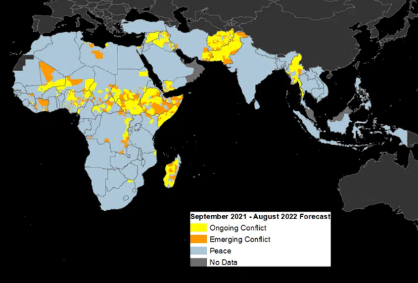 Our Global Early Warning Tool provides the initial step in a multi-step process, employing machine learning to predict conflict 12 months ahead in Africa, the Middle East, and South and Southeast Asia. So far it has captured 86% of future conflicts, successfully forecasting more than 9 in 10 “ongoing conflicts” and 6 in 10 “emerging conflicts”.
