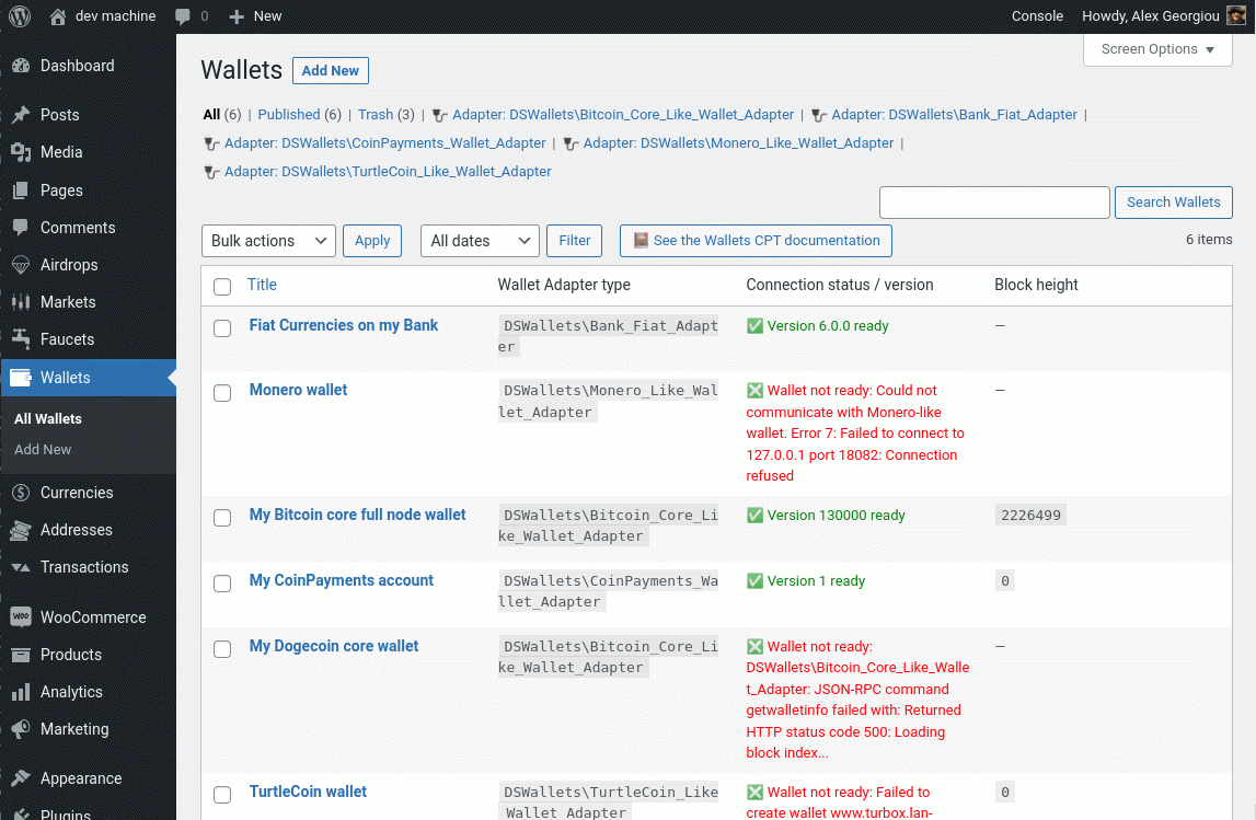 - Add: Wallets now have their own CPT and editor screen. Connection information for wallet APIs is now decoupled from currency details.