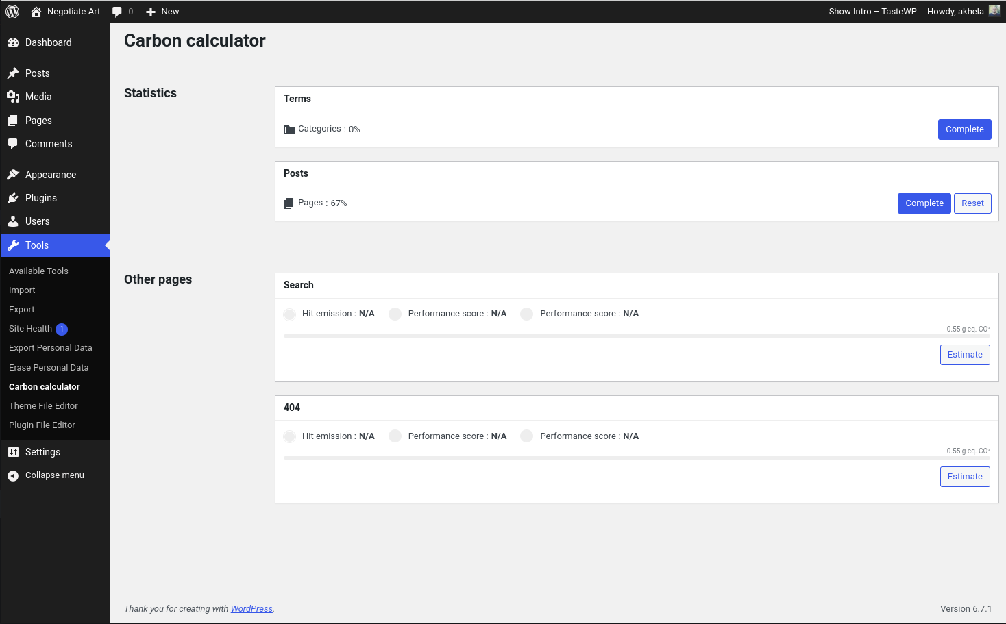 - Navigate to the plugin settings to configure and start analyzing your website's carbon footprint.