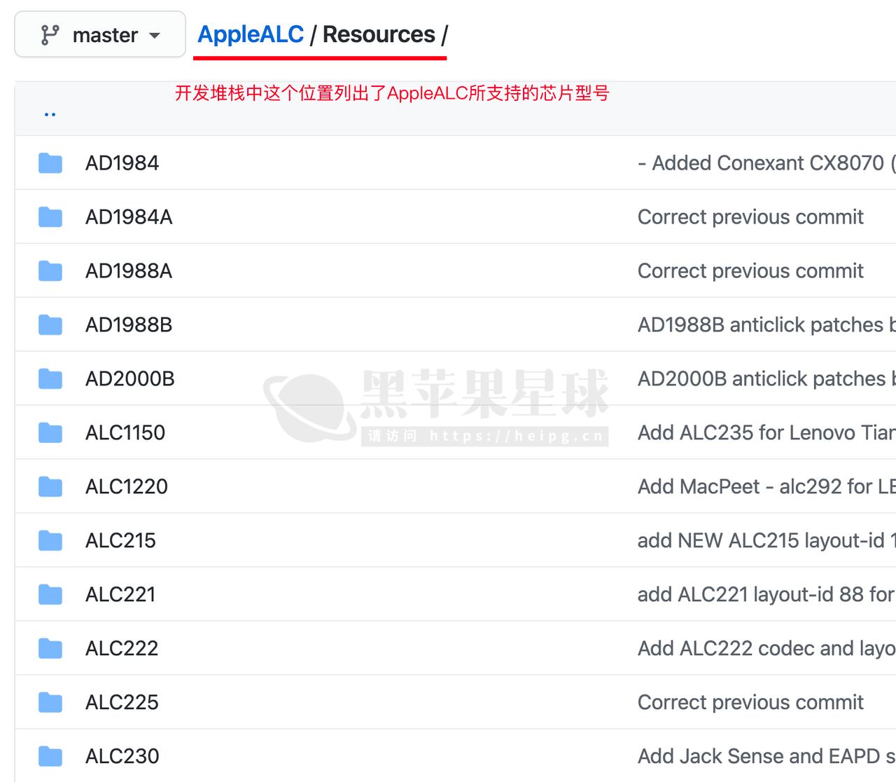 这里再介绍另一种布局 ID 的查找方法,打开 AppleALC 的开发堆栈,在列表中可以直接看到支持的型号表: