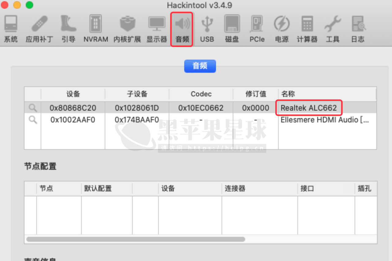 此外,如果你已经安装好了 macOS,还可以使用 Hackintool → 音频 进行查看。