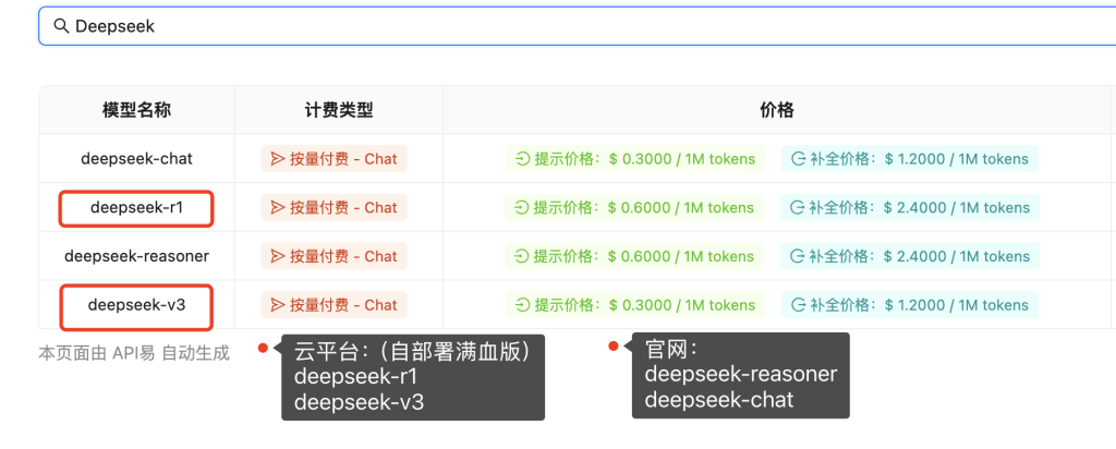 站长注:详细解读 API易 提供的不同来源 Deepseek 模型的特点、差异和调用注意事项,帮助开发者避免常见问题。