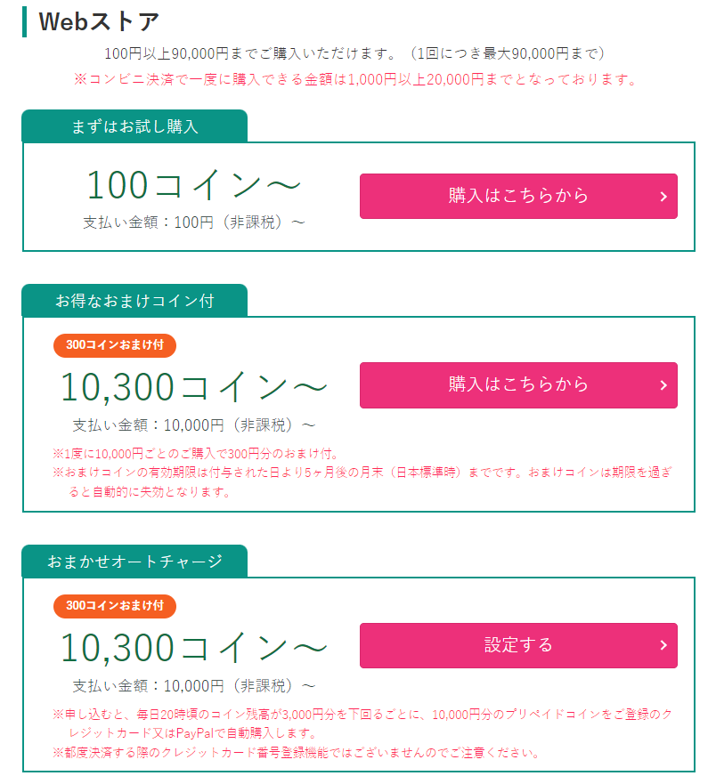 ・iOSアプリをご利用の場合は、Safari等のブラウザからWebストアより、コインをご使用ください。