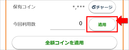 →[全額コインを適用]を押すと、支払金額内の保有コインが全て適用されます。