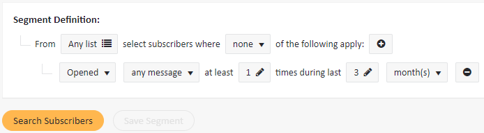 - Create a segment that picks only the subscribers who have not opened any message in the past 3 months: