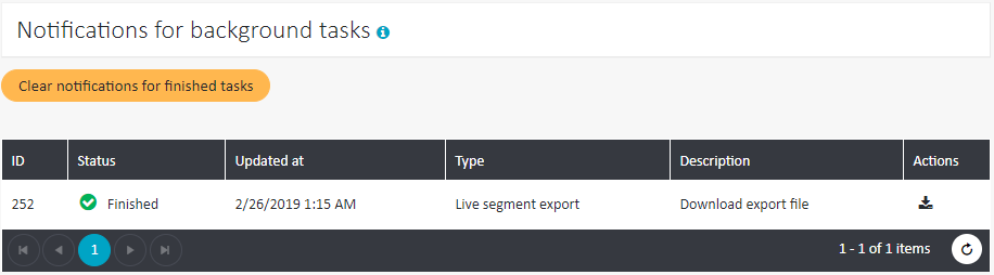 - After the import is ready, check the Tasks section on the top of the page, find the exported file and save it to your hard drive.