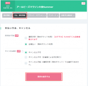 支払い方法、キャンセルの設定