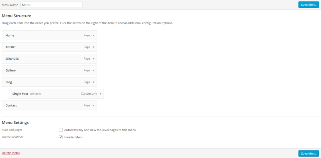 The theme supports two levels of drop-down, so you can manage your menu items and allow for deeper navigation.