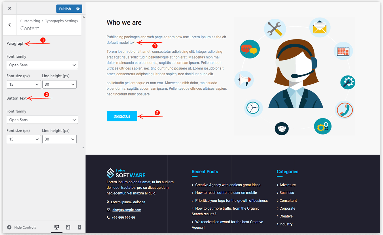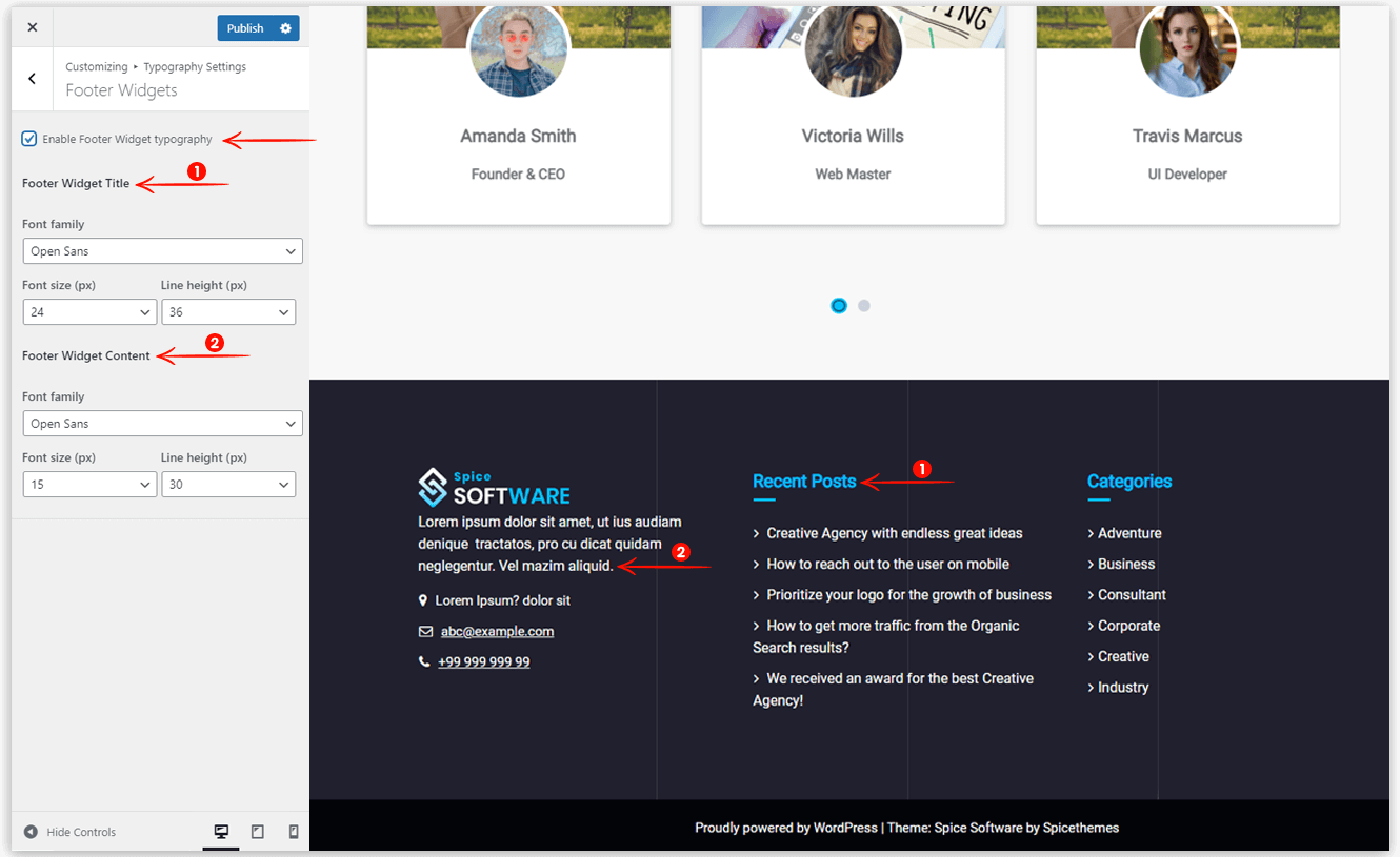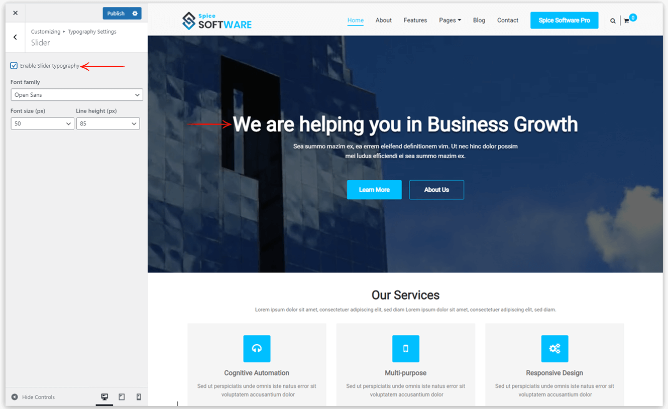 Spice Software Typography gives you complete control to manage typography from header to footer on your website. This will help you to manage fonts throughout your website. You can easily manage the font family, font style, and line height.
