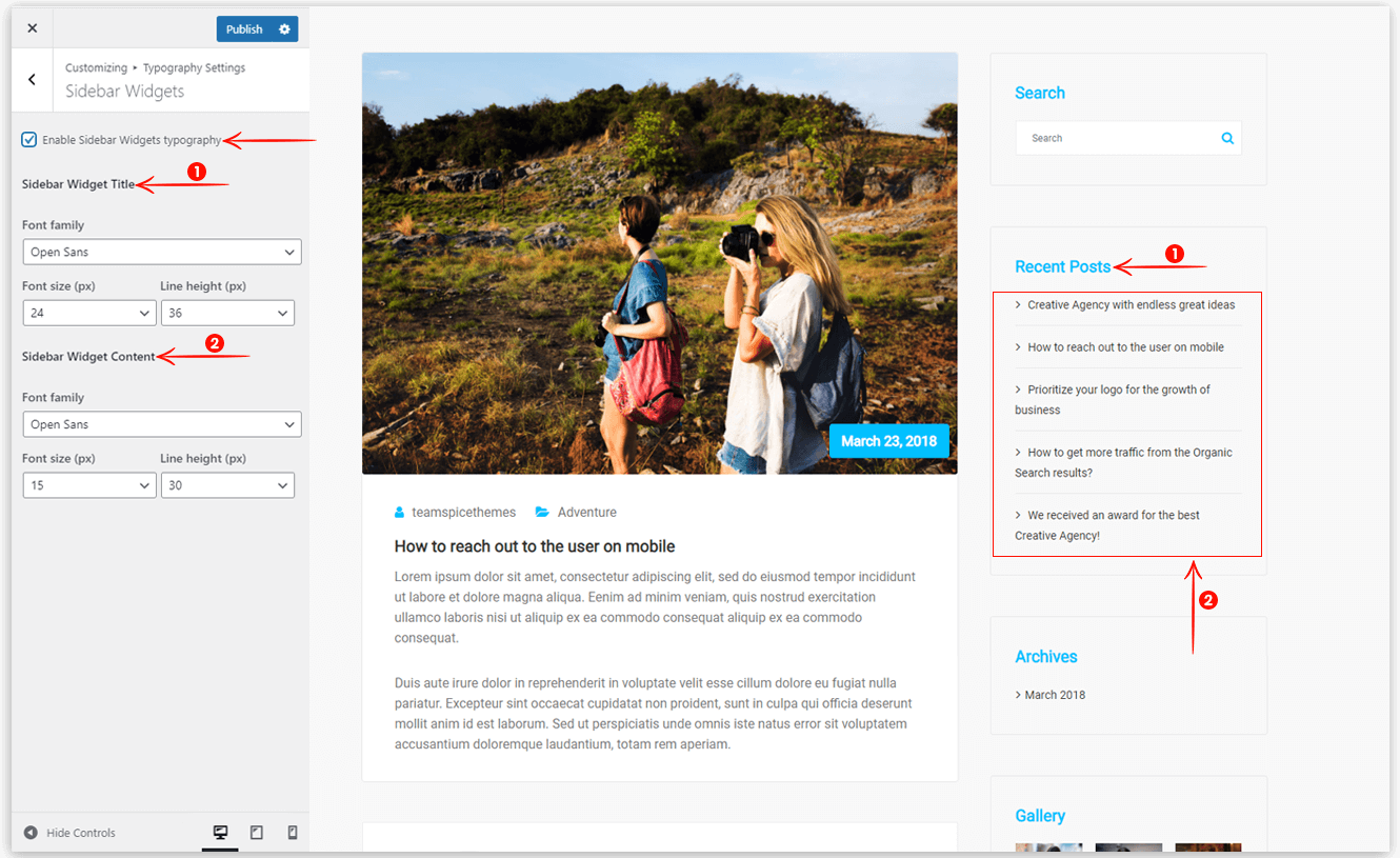 This option helps you to set the typography for the sidebar widget title and widget content.