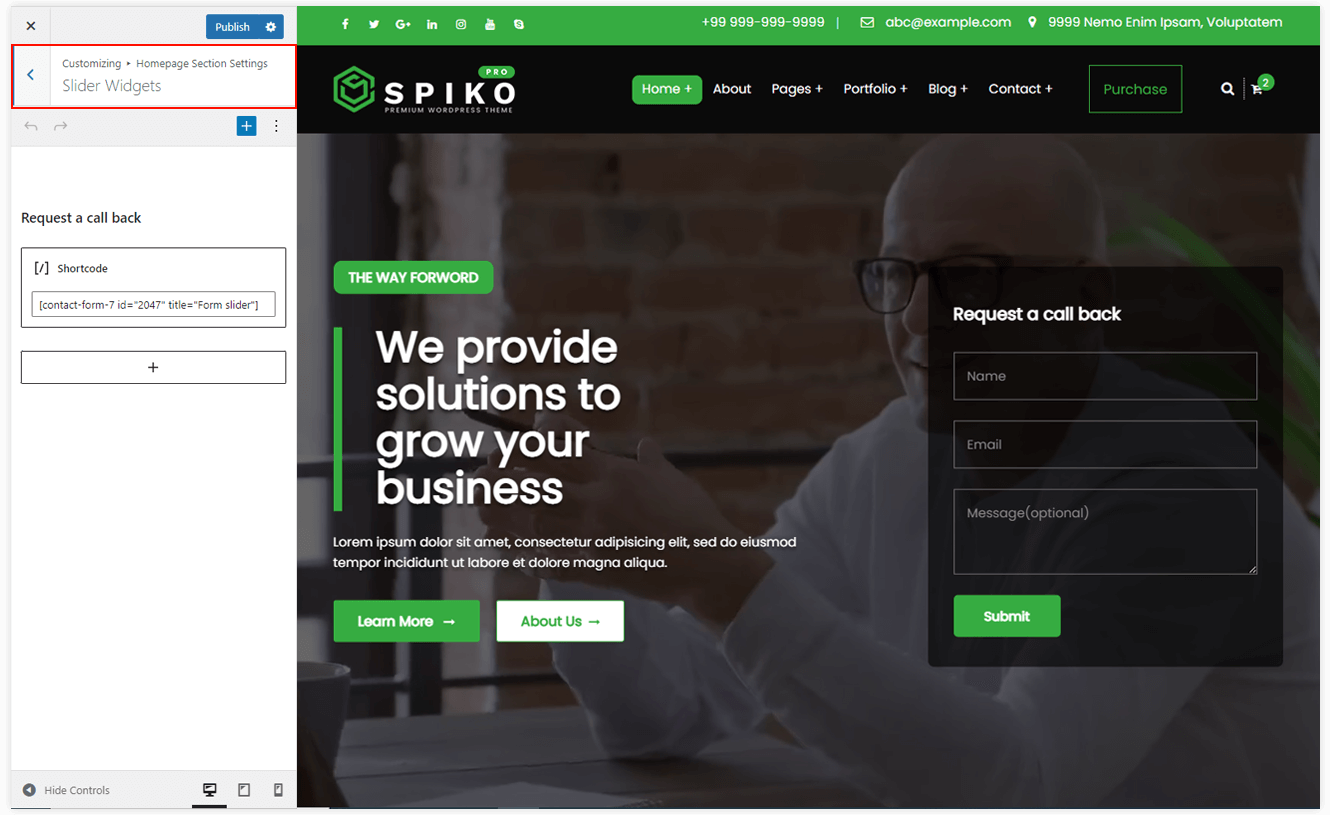 To add the widgets, Go to Appearance >> Customize >> Homepage Section Settings >> Slider Widgets