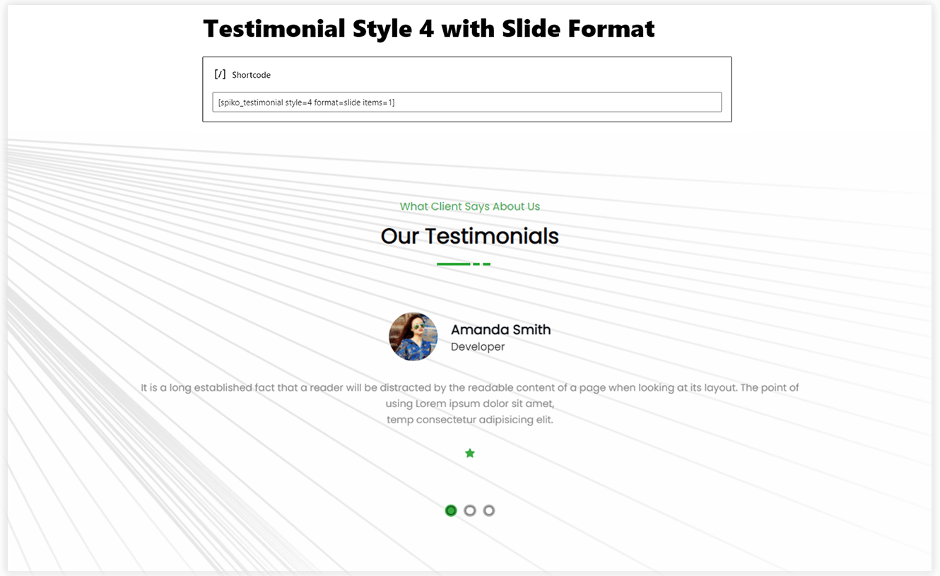 - Testimonial: [spiko_testimonial]