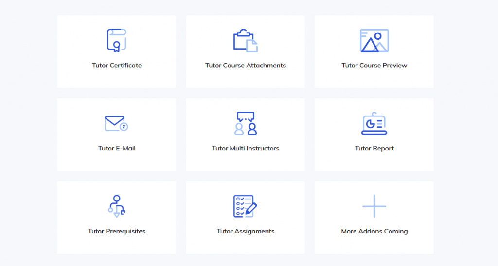 Tutor LMS software also comes with 15+ premium add-ons to add more functionalities to the eLearning platform. These include: