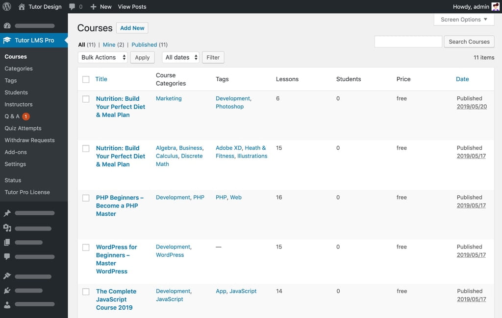 Being a complete, feature-packed WordPress LMS plugin, it helps you create and sell online courses. Whether it is about creating challenging quizzes or getting insightful reports about the courses or learners, Tutor LMS can help you do that, without the need to write even a single line of code.