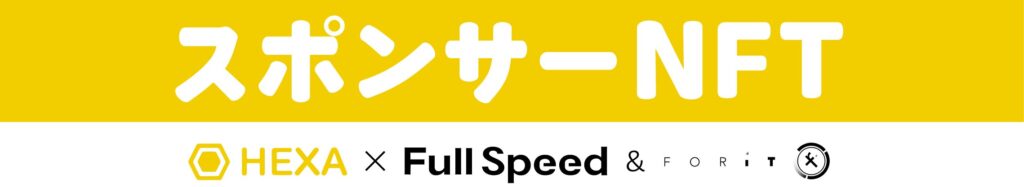 スポンサーNFTは、NFTマーケットのHEXA(ヘキサ)と株式会社フルスピード(銘柄コード:2159)及びその子会社である株式会社フォーイットとコラボレーションして実現したWEB3.0のマーケティング手法をリアルでも実現するNFTとなります。