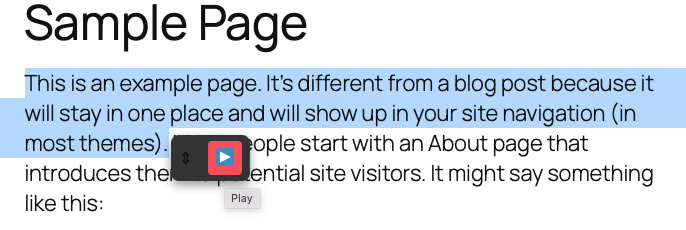 - Visit your site, select any text, and click the play button to hear it aloud.