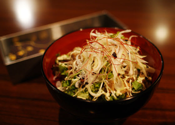 豚の柔らかい角煮を野菜と一緒に混ぜてサッパリといただいた。