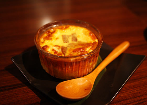 旨煮丼と同じ豚肉をジャガイモと一緒に卵で溶いて、ココットに流してオーブンで焼いたグラタンといったカンジ。