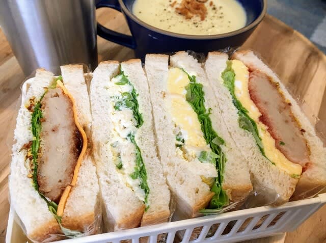 この時季ならではのカボチャやゴボウといった根菜を使ったサラダ等、具材違いに加えてサンドするパンの種類まで組み替えるとは恐れ入ったところ、ヴィ・ド・フランスならではの可愛らしくも手仕事の際立つサンドイッチ弁当に舌鼓