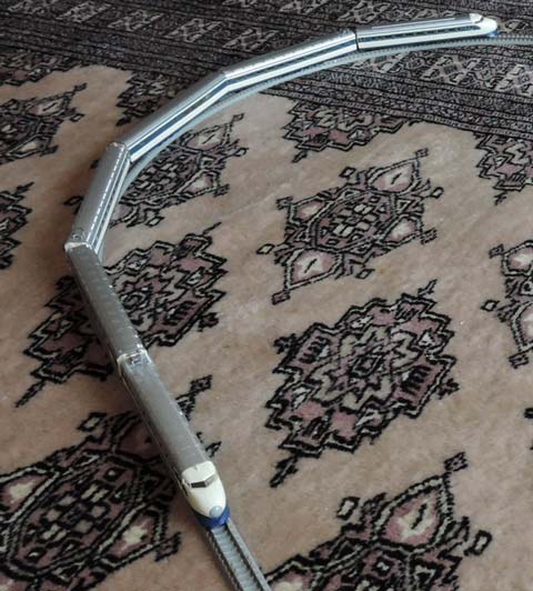 ところがカーブ(317+391Rの緩和曲線)ではトレーラーの抵抗が大きいのと学研の車体の軽さの為に脱線が頻発した為にKATO動力も盛大に空転を初めてしまい9連での運行は不可能でした。