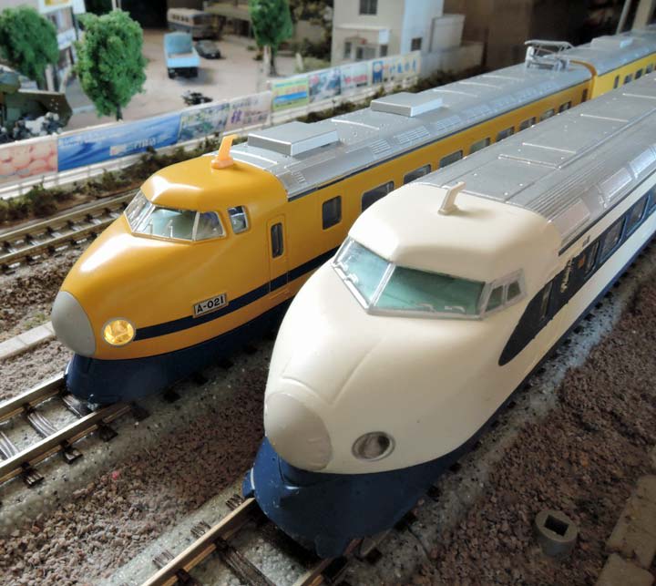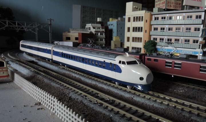 型の新しい0系小窓車であればプラッツのZゲージでも同じシーンは再現可能。むしろ今だったらそちらの方がより手軽かもしれません。