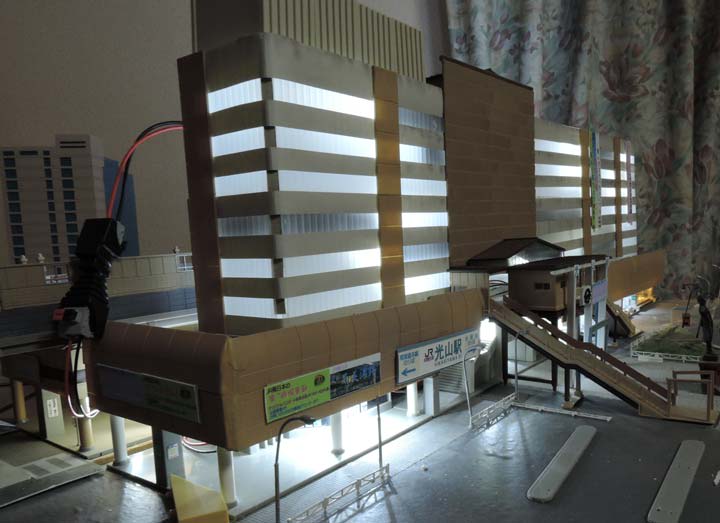 とりあえず灯りを組み込み通電してみましたが夜目にも明るい不夜城の如き駅ビルが現出したのには我ながら思わず感動です。