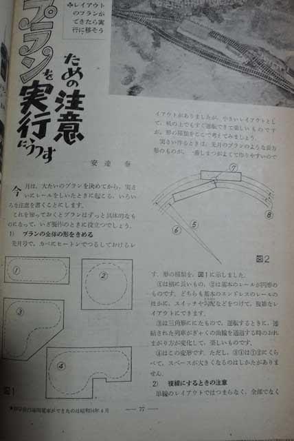 ほかの雑誌(もちろん専門誌を含む)が誰かの製作記とか、配線、シーナリィの技法が重点なのに対し本誌では「レイアウトプランを実行にうつすための注意」という基礎的な部分に意を用いているのが特徴的です。