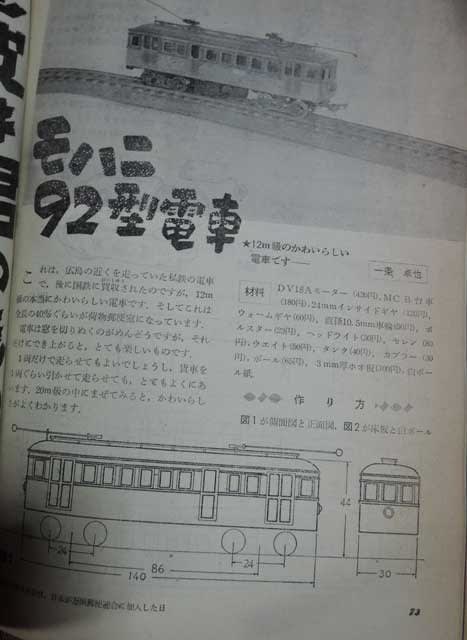そのころのメイン記事は当時の風潮を反映して9ミリゲージの軽便鉄道の工作が中心でした。(あの頃はNゲージの小型機関車が続々リリースされ始めた時期でHOスケールのナローモデルの最初のブームが始まった時期でもあります)