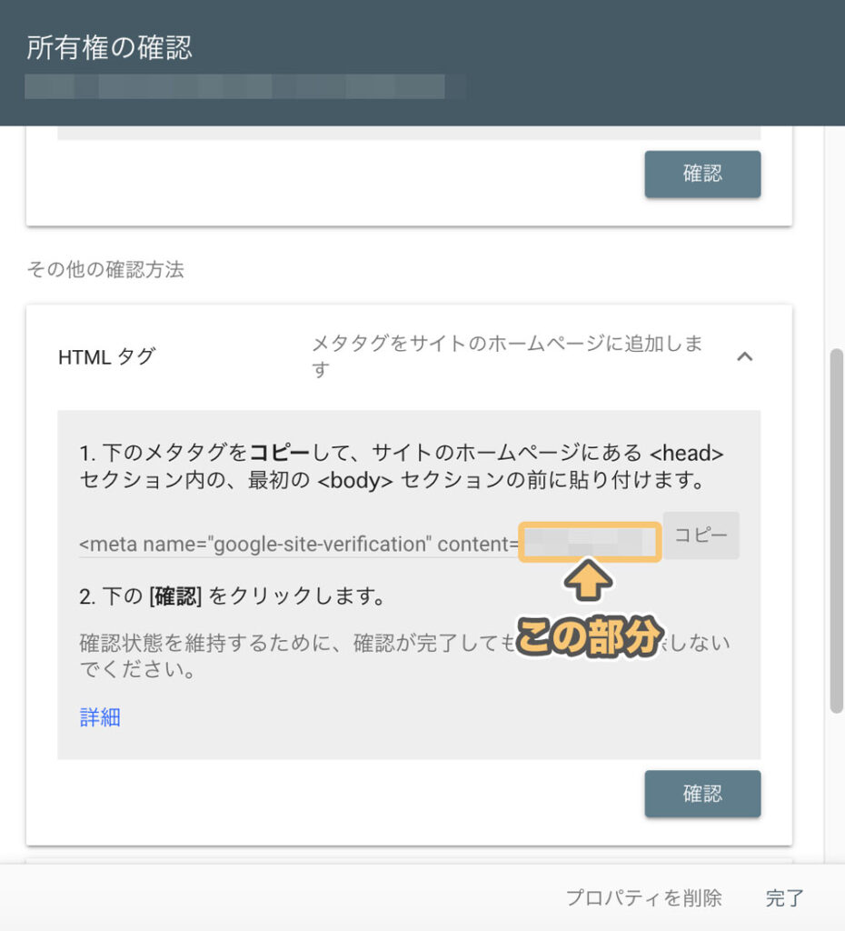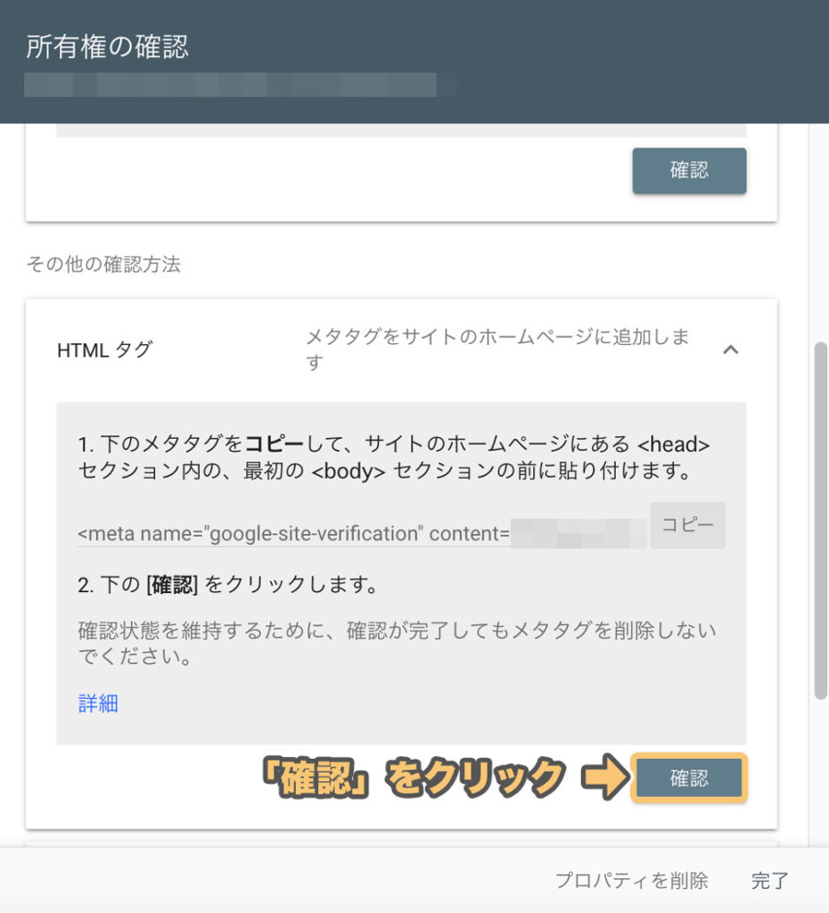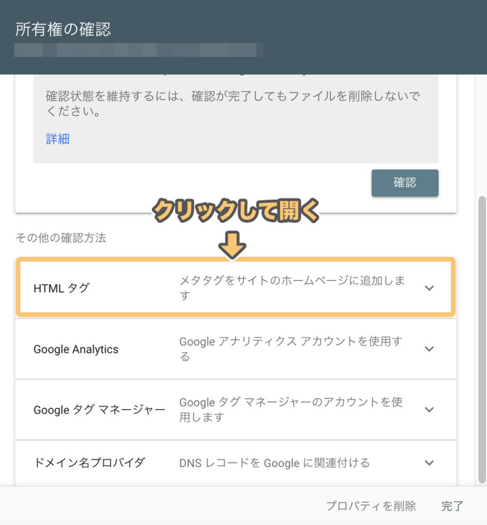 「その他の確認方法」の「HTMLタグ」をクリックすると