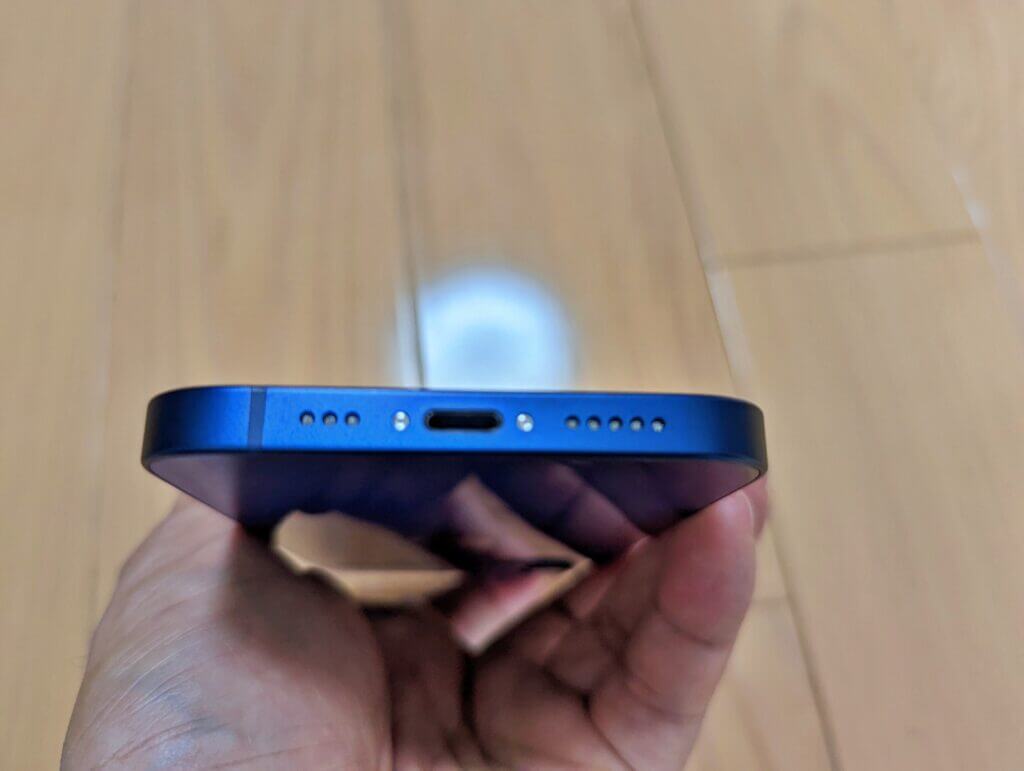 底面は・・・ピンぼけしちゃっていますがLightning端子に傷もなしです。ここはすぐに傷がつくので中古ならば気しなくてOKだと思います。