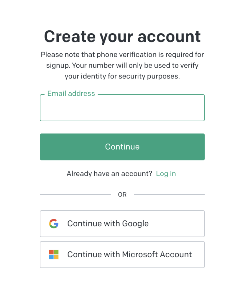 メールアドレスとパスワードで登録してもいいですが、GoogleやMicrosoftアカウントを持っている人は、そっちを使った方が楽ちんです。