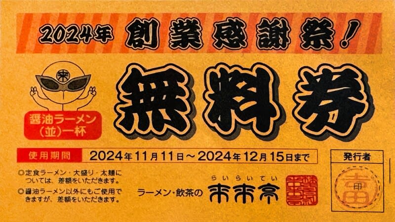 今回のリクエストは「麺硬め・九条ネギ多め・背脂増し増しで」と言えば「背脂の増量サービスはやめました」とのことで、理由は原材料の背脂が1.5倍に値上がりしているのが理由だそうだ。食べる時には麺が丁度良い硬さなのも計算ずくだ。目的の無料券を受け取って起源の12月15日を確認したのは、3年前は期限切れにしてしまったオチがついたからだ。
