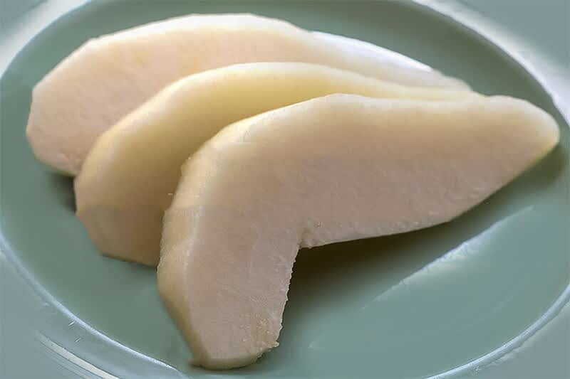 洋梨の品種は、山形のラフランスから始まり、新潟のルレクチエなどなど、今や日本で栽培されている洋梨の種類は16種類にも及ぶようだ。今回は、山形のエル・ドラドという大きな品種を使って、洋梨タルトを作っていくが、甘い証のサビ(傷のような褐色の斑)があると安心して甘さを期待できる。