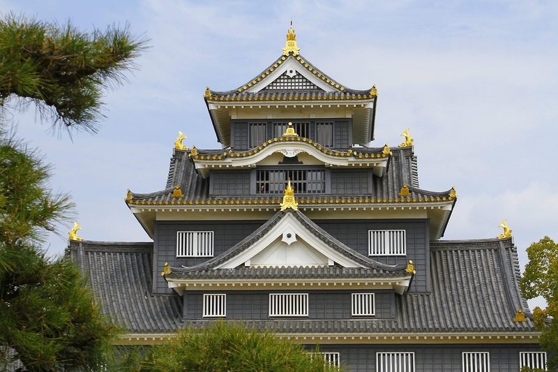 「関ヶ原の合戦」では西軍の特攻隊長となった「宇喜多八郎秀家」。その父「直家」が岡山の石山にあった城砦に入城した機会に、大改築のうえ居城とし、城下町的繁栄の基礎をつくった。下の画像は「後楽園内」から見た「岡山城」。