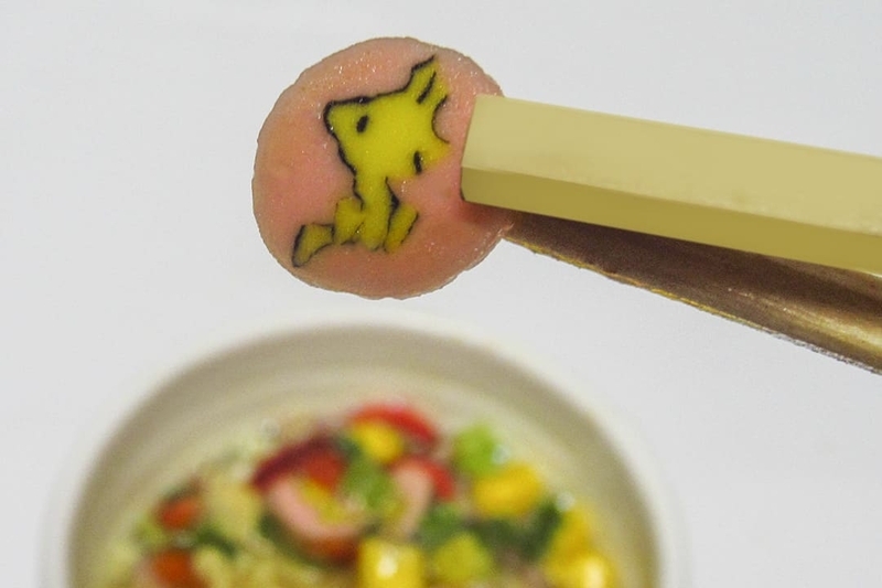 ウッドストックのなると・ベーコン・コーン・ねぎ・赤ピーマンなどが、彩り豊かに入っている。このくらいのブツになれば、ミニ